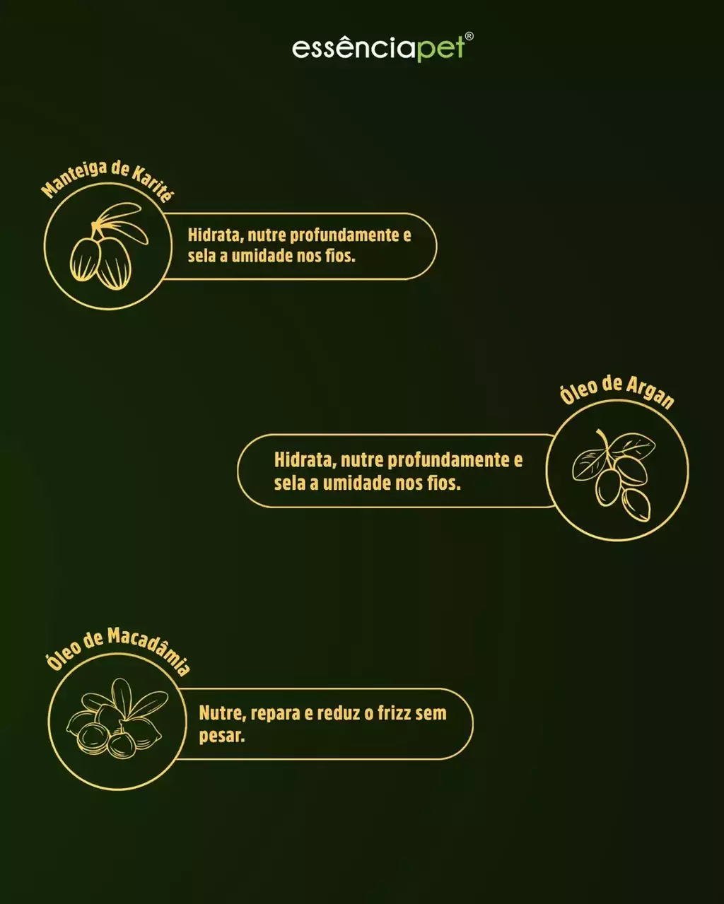 Ele foi desenvolvido para nutrir, proteger, restaurar e acalmar, tanto a pelagem quanto a pele do pet.