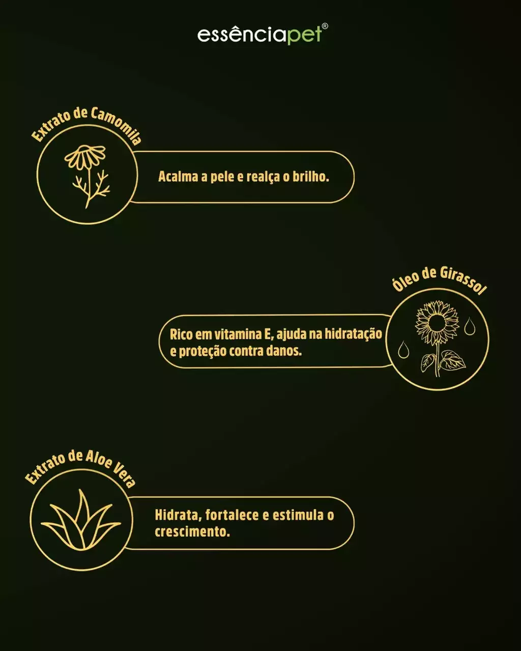 Extrato de Aloe Vera: Hidrata, fortalece e estimula o crescimento.