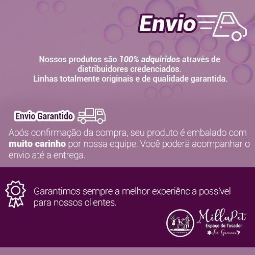 A fórmula do shampoo azul para pet é enriquecida com ativos derivados do coco e corante azul, que eliminam e previnem o amarelamento dos pelos claros, deixando-os limpos, brilhantes e suavemente perfumados.